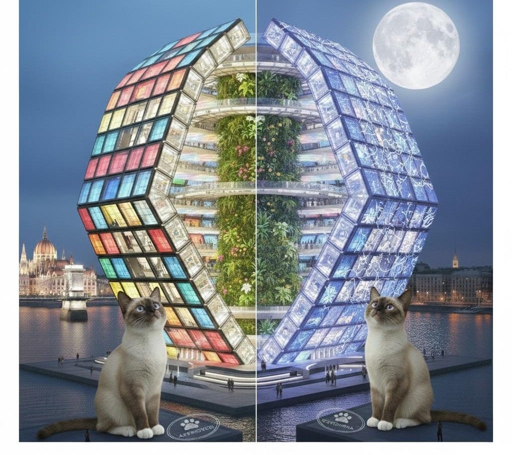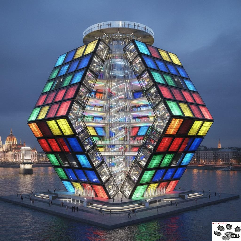 Dialogo con la Storia: La scelta di Budapest è un omaggio alle origini dell'inventore, ma il contrasto con il Parlamento ungherese (simbolo del potere politico tradizionale) suggerisce che la creatività e l'ingegno (il Cubo) debbano avere lo stesso peso monumentale della storia politica.