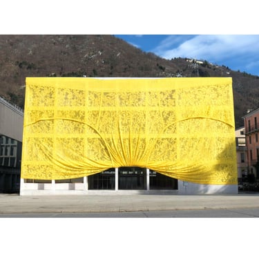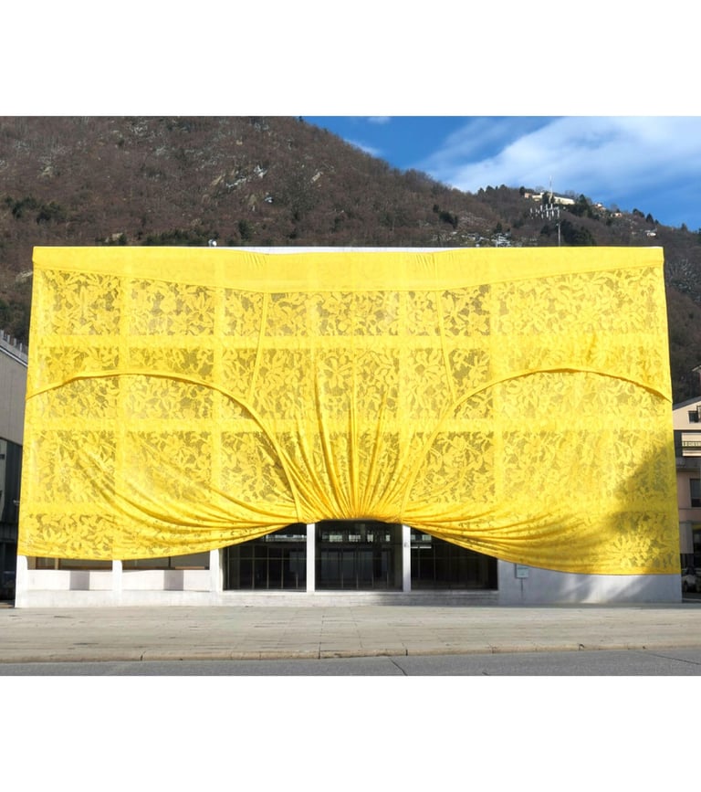 L'Atto di Pudore (La Mutanda di Seta): Si ordina l'applicazione di una Mutanda Monumentale in seta tecnica giallo neon . Non è un insulto, ma un atto di compassione verso un edificio costretto per cent'anni a fare la guardia. La seta (anima di Como) avvolge il marmo (scheletro del potere) per ammorbidirne l'impatto sociale.